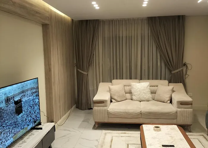 El apartamento المهندسين El Cairo se encuentra a 6 km de la Mezquita-madrasa del Sultán Hasán y a 10 minutos a pie de la estación de metro Bohousy. El apartamento ofrece vistas al jardín y cuenta con una terraza.